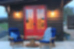 It has a living area with plush velvet sofa, a kitchenette with designer copper sink, hand painted Talavera tiles, hob, microwave and mini fridge freezer. French doors open up on to an extensive outdoor seating area and grass meadow, which is framed on one side by a majestic oak tree.